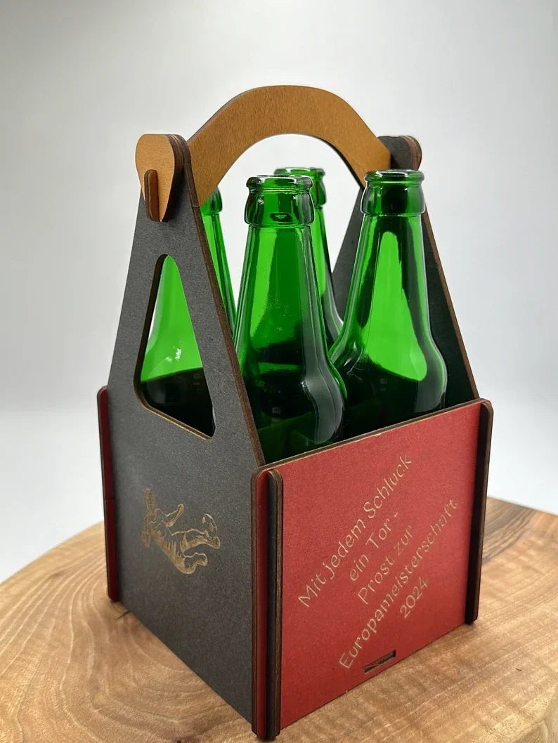 Feiern Sie die Europameisterschaft mit Stil und Komfort! Unser exklusiver Bierträger bietet Platz für bis zu vier Flaschen mit einem Durchmesser von 5,8 cm und ist super geeignet für Flaschen mit einem Fassungsvermögen von 0,33 Litern.