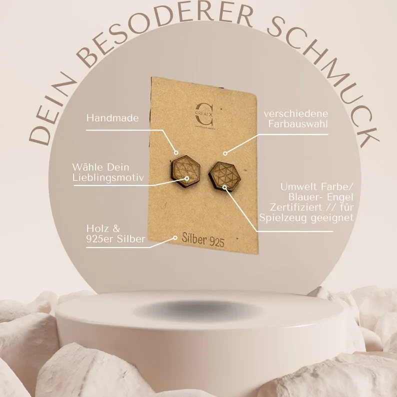 Einzigartiges Design: Die Kombination aus edlem Silber und natürlichem Holz macht diese Ohrringe zu einem echten Hingucker. Das minimalistische Design passt zu jedem Outfit und Anlass. Nachhaltigkeit: Wir verwenden nachhaltige Materialien und fertigen unsere Ohrringe mit einem Bewusstsein für Umweltfreundlichkeit und Qualität.