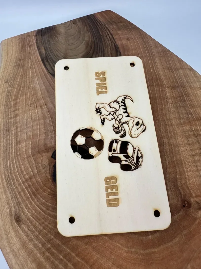 Jede Geldbox wird mit einem passenden Schriftzug gelasert, der den Verwendungszweck klar definiert. So können Kinder spielerisch lernen, ihre Finanzen zu verwalten und ihre Ziele zu verfolgen. Dank der hochwertigen Holzverarbeitung und präzisen Lasergravur sind unsere Geldboxen nicht nur funktional, sondern auch langlebig und dekorativ.