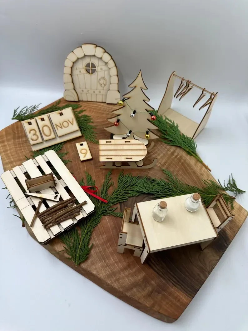 Unsere Wichteltüren und Zubehörteile werden sorgfältig aus stabilem Pappelsperrholz gefertigt und mit viel Liebe handgearbeitet. Die Türen können nach Belieben farblich gestaltet werden, sodass du sie individuell an deine Weihnachtsdekoration anpassen kannst.