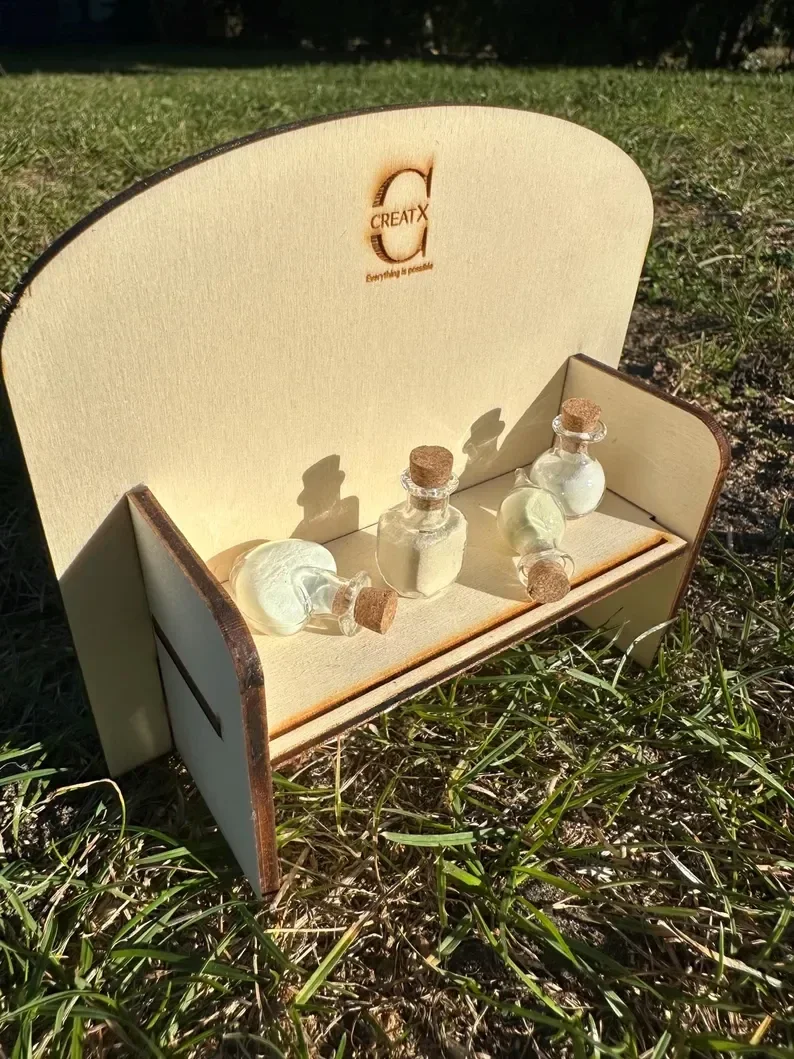Tauchen Sie ein in die Magie des Wichtel-Zauberlabors mit meinem zauberhaften Mini-Glasfläschchen! Diese kleinen Phiolen mit Korkverschluss sind nicht nur dekorativ, sondern auch ein echtes Highlight: Gefüllt mit feinem Leuchtstaub, bringen sie jede Wichtelwelt zum Strahlen.