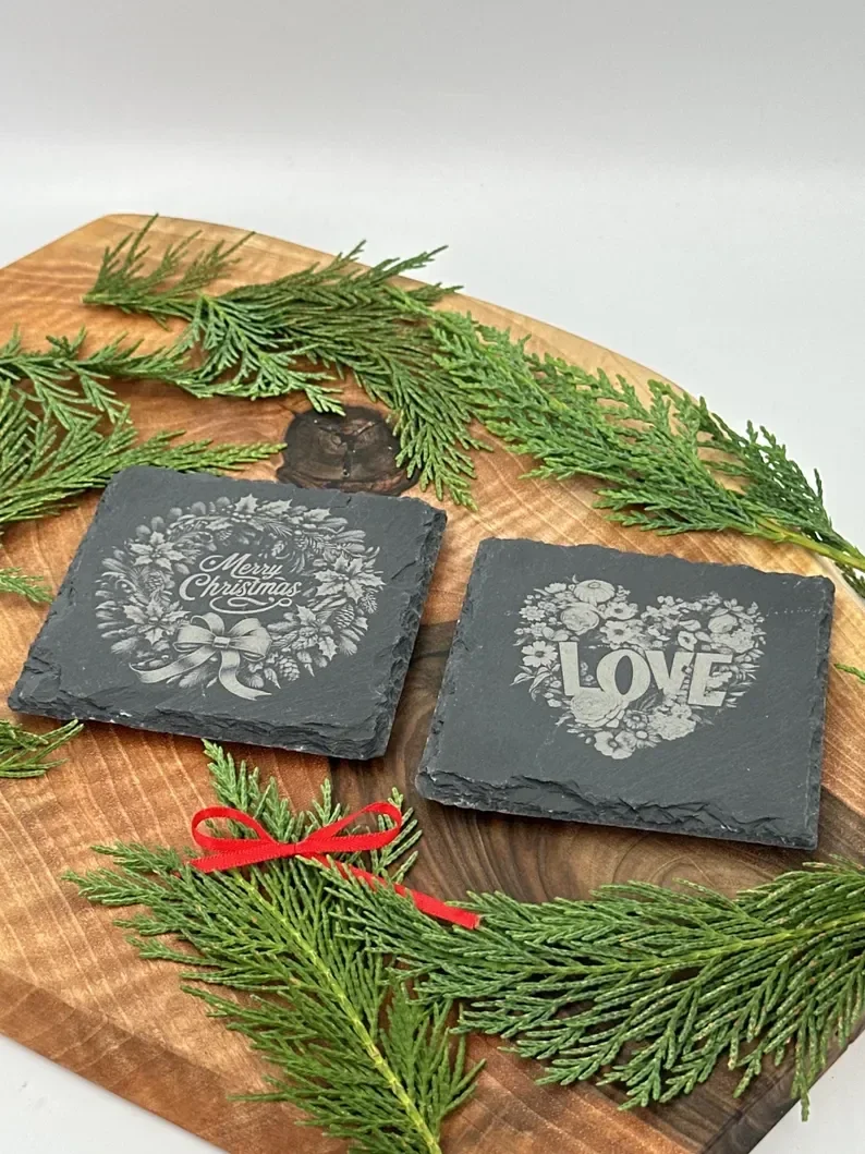 Du kaufst hier einen Schieferuntersetzer der Motive zu besonderen Anlässen bietet, sie bieten eine natürliche Eleganz und zeitlose Schönheit.