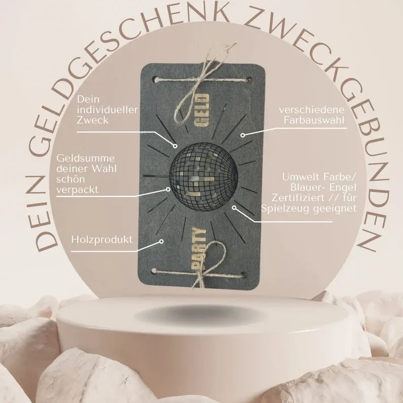 Überraschen Sie Ihre Lieben mit einem individuellen Geldgeschenk! Unsere einzigartigen Holzhüllen sind nicht nur eine stilvolle Verpackung für Geldgeschenke, sondern auch eine clevere Art, Geld für bestimmte Zwecke zu sammeln. Ob für Schuhe, Reisen, den Führerschein oder andere Träume – mit unseren speziell gestalteten Geldgeschenken können ihre Wünsche visualisiert werden.