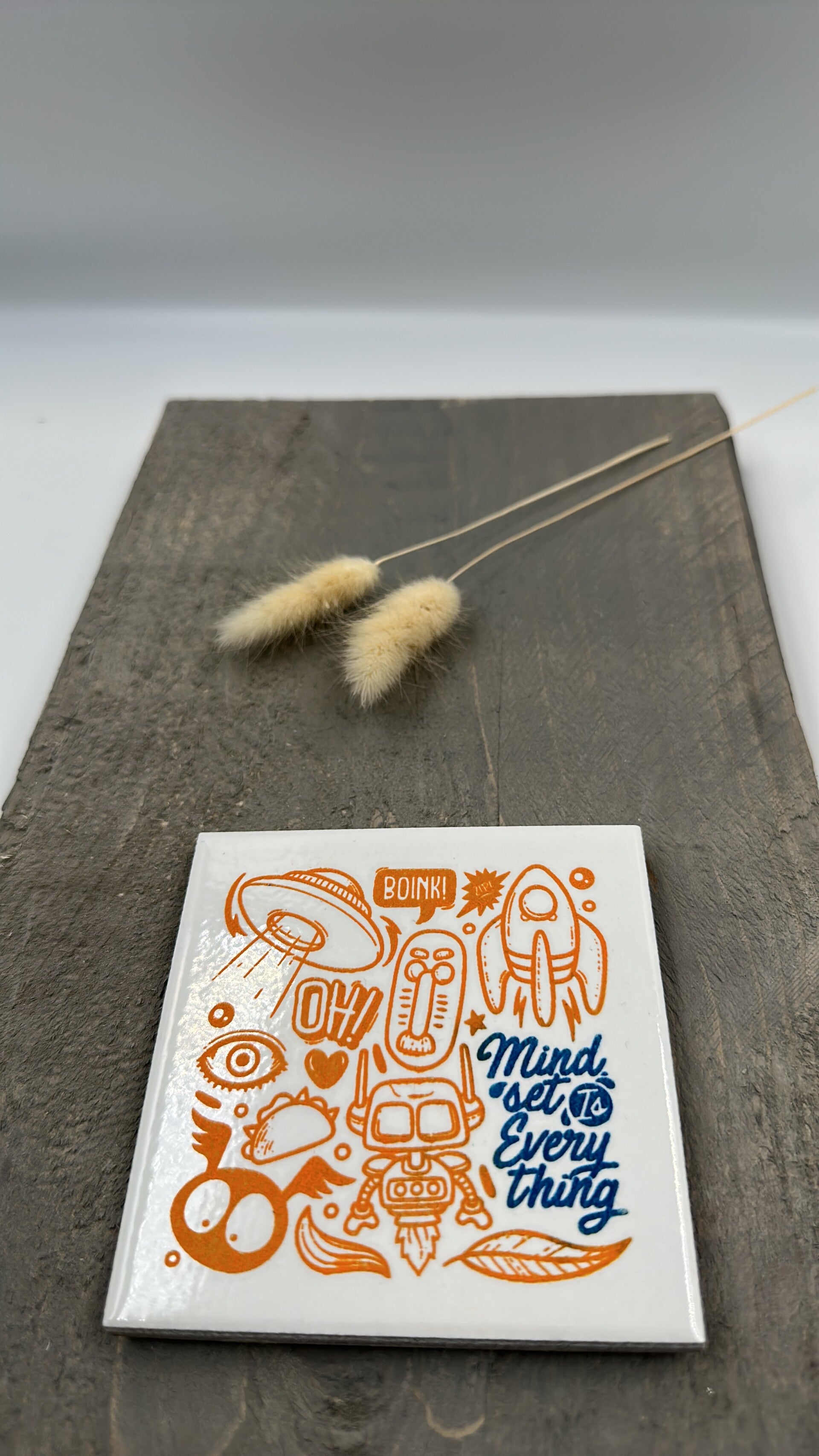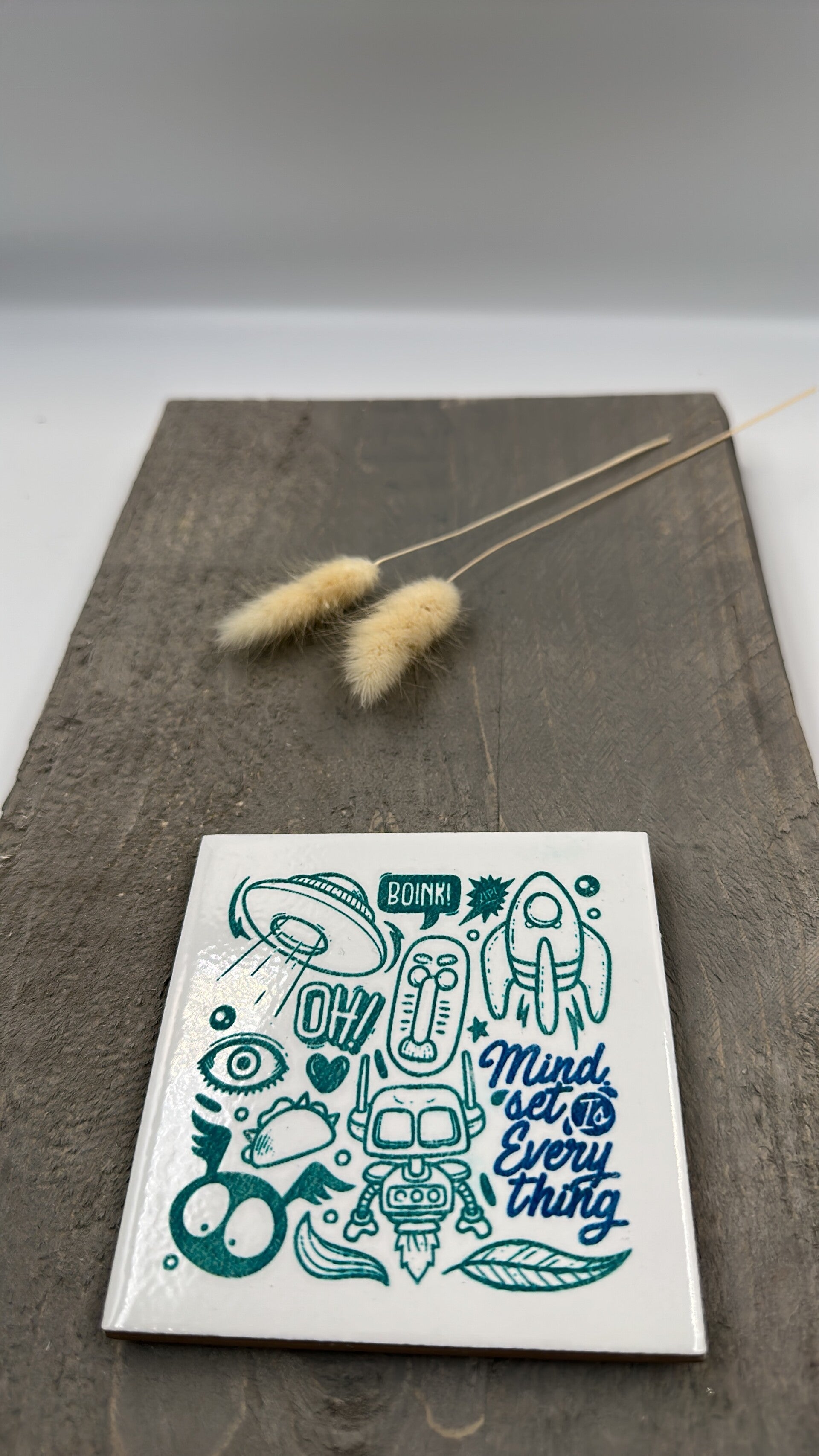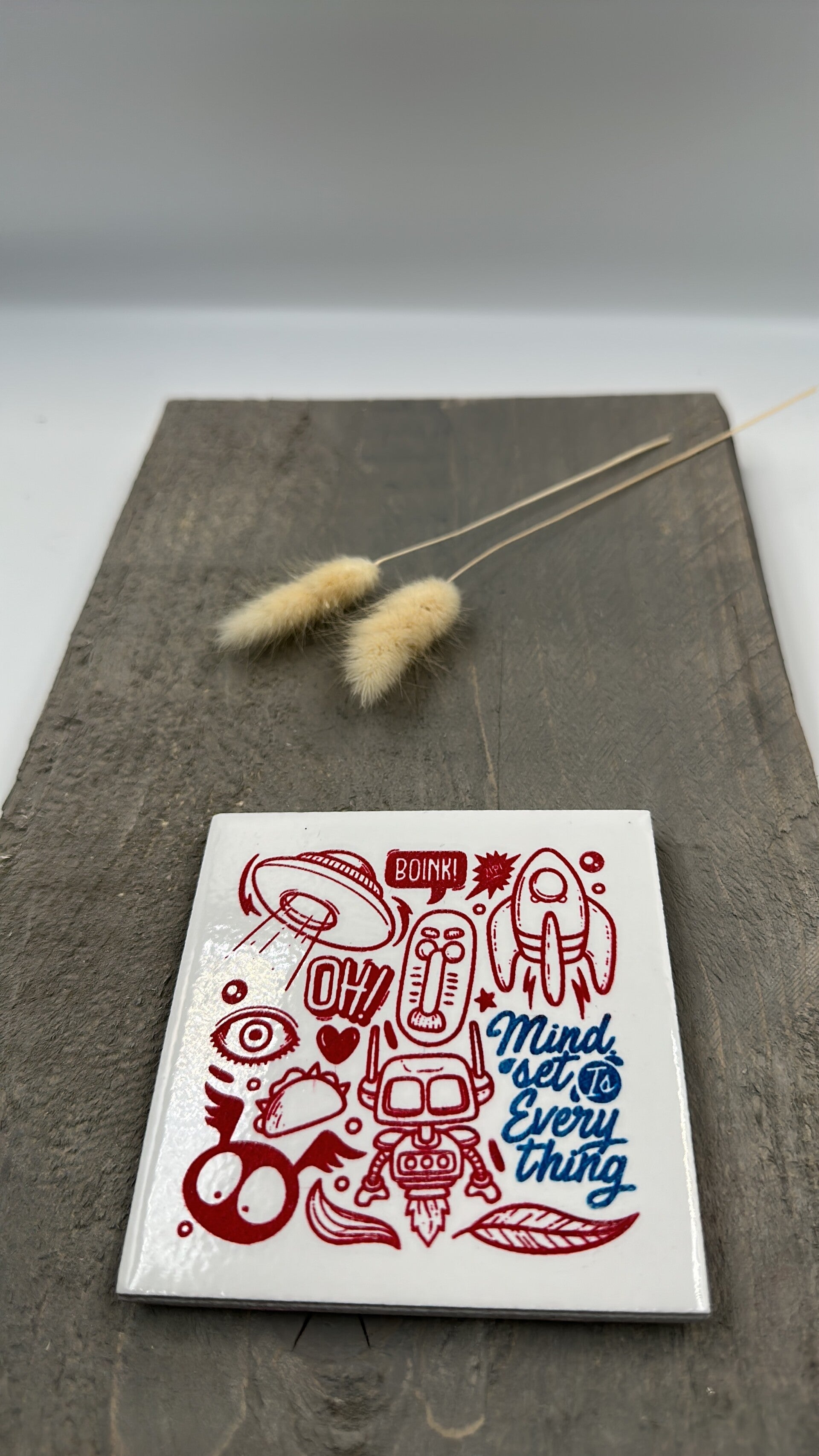 Mindset | Design Untersetzer | Fliesenuntersetzer | lasergraviert | handbemalt