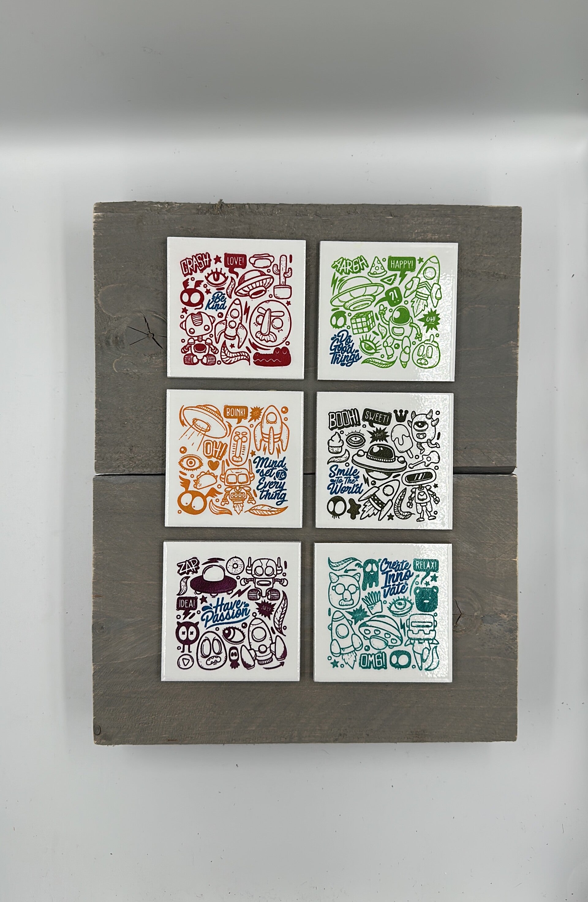 Family & Friends 6er Set | Design Untersetzer | Fliesenuntersetzer | lasergraviert | handbemalt
