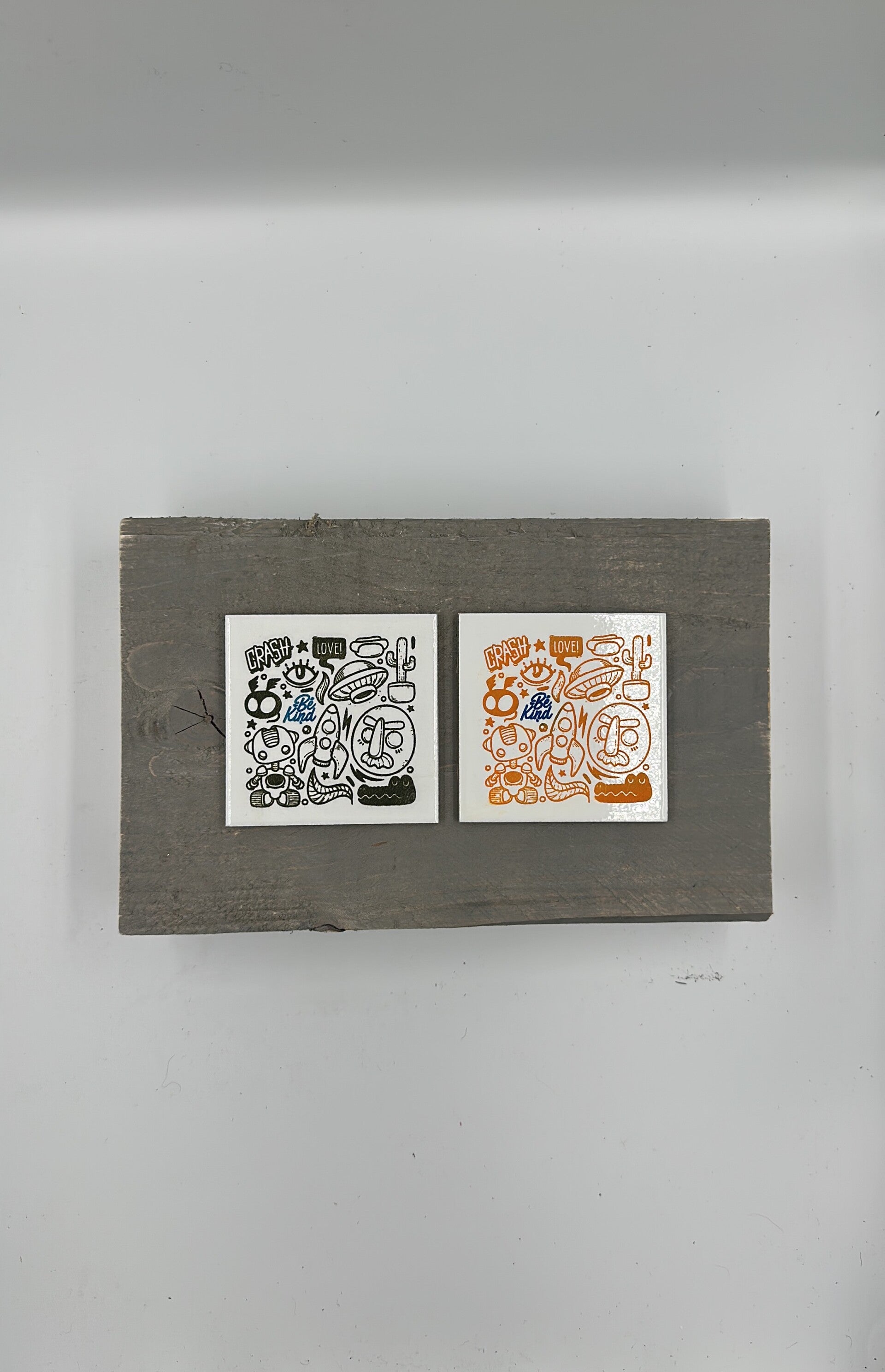 Couple 2er Set | Design Untersetzer | Fliesenuntersetzer | lasergraviert | handbemaltHase Dekor-Fliese Untersetzer