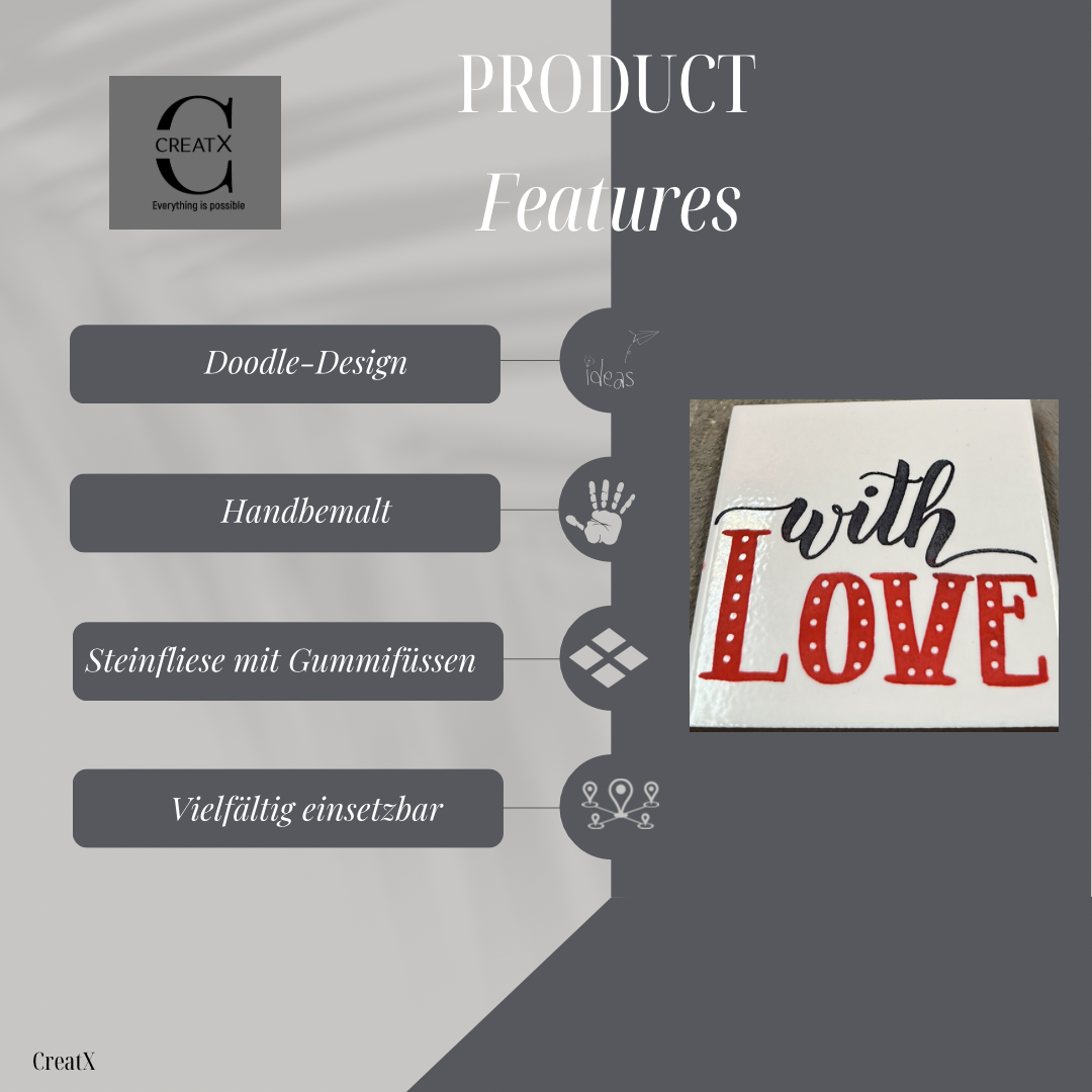 LOVE | Design Untersetzer | Fliesenuntersetzer | lasergraviert | handbemalt